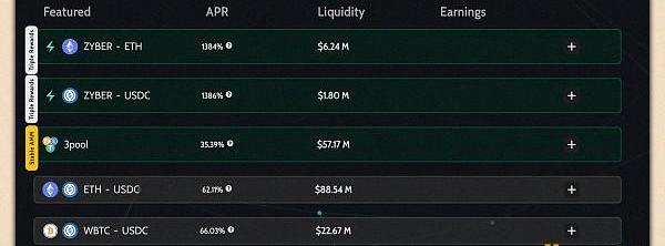 Zyberswap是一種Arbitrum原生DEX,僅在2月份就有大量流動性流入,TVL達到了1.85億美元。當注意到a16z向流動性池中存入數百萬美元時,該協議引起了我的注意。