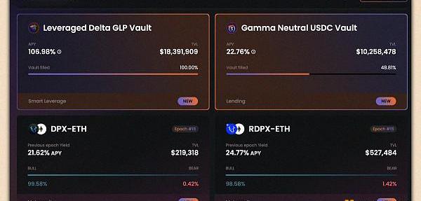 JonesDAO在Arbitrum上提供了幾個一鍵式DeFi保險庫,當前TVL為4300萬美元。其中包括來自Dopex的期權金庫和delta中性GLP金庫。很高興看到將來會添加新的金庫和策略。