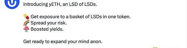 今年2月22日,Yearn官方宣布,即將推出新的產品「yETH」,旨在以yETH的代幣形式覆蓋一籃子LSD資產,在分散風險的同時提升收益率。