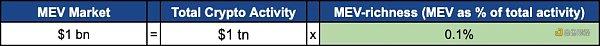 暴露的MEV機會占總活動的一定百分比。為簡單起見,讓我們假設我們對總crypto活動和MEV分別有完美的定義和度量。然后,我們可以準確定義活動暴露的MEV平均值。