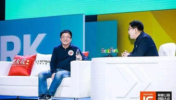 在2019年創新大會上,張鵬與王慧文進行了深度交流|圖片來源:極客公園