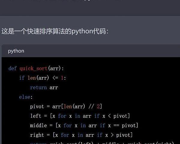 ChatGPT回答:這是一個「快速排序算法」的python代碼,然后就是一串完美的代碼。