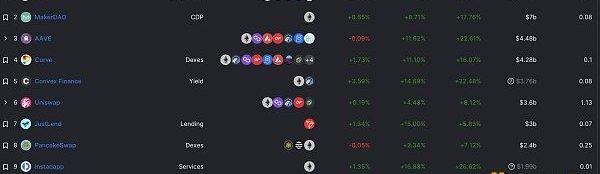 DeFi總市值及前十代幣數據來源:coingecko