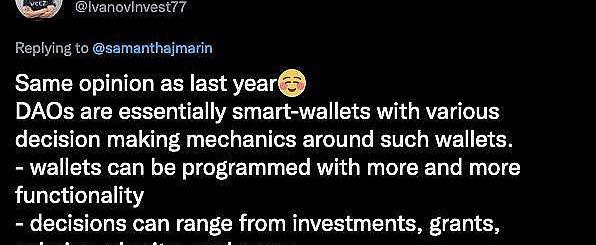 我在Twitter上詢問是否有人對DAO的看法發生變化。以下是我最喜歡的一些答案: