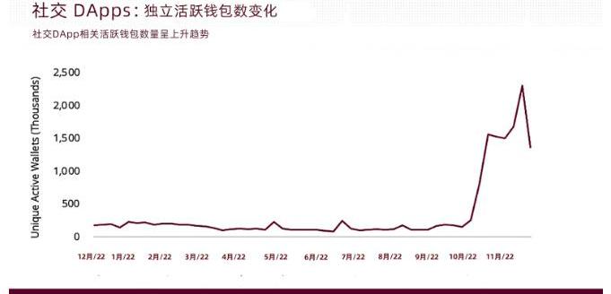 此外,該網絡的交易量創歷史新高,?2022年5月達到980萬,?10月日活躍用戶達到220萬的峰值。