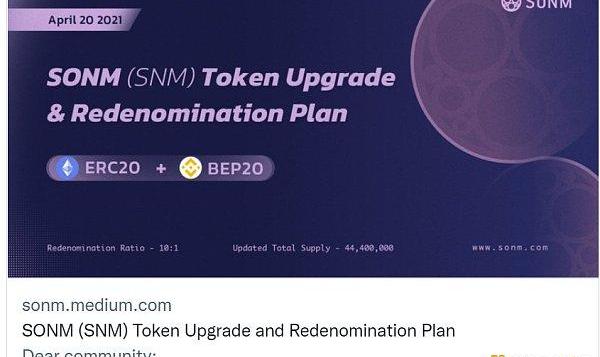 SNM代幣的總供應量將從4.44億轉為4440萬。