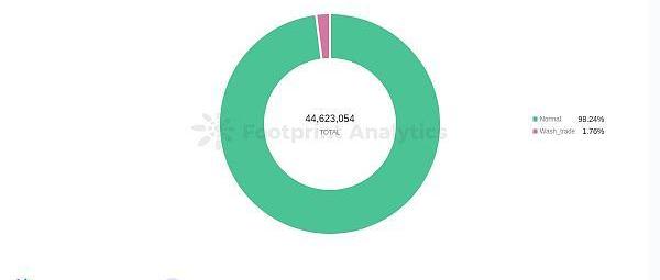 通過這些規則過濾之后,我們發現自這兩個NFT交易平臺推出以來,有80%以上的交易量都是洗盤交易:?
