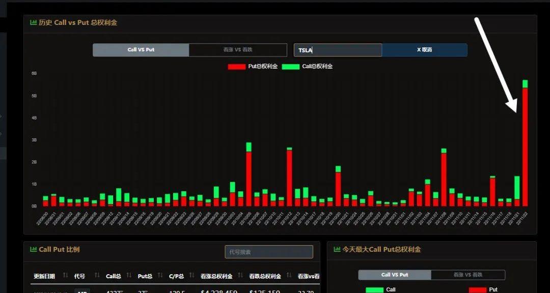 此外今天我們在美股大數據量化交易終端StockWe上發現特斯拉看跌期權出現異常的多
