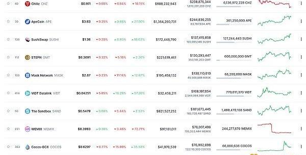24小時NFT交易量、交易量前十項目數據來源:Coinmarketcap