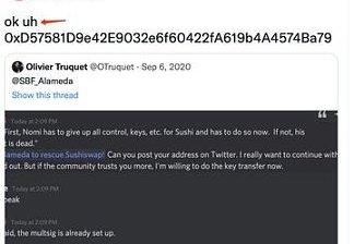 為什么我們很肯定「0xD5」這個地址就是SBF的呢?其實,他自己承認過!當然,我們還找到了另一個有力證據,根據PANews的一篇報道稱,DeFi協議SushiSwap的多簽驗證者之一就是SBF,而他用的就是這個地址。