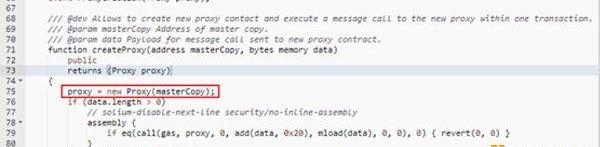 6月5日,黑客通過重放Ethereum/L1上的交易創建了GnosisSafe:ProxyFactory1.1.1合約,其地址與Ethereum/L1上一樣;然后地址0x60b2通過合約0xe714部署了多簽合約0x4f3a,合約所有權歸黑客所有,因此5月27日轉入的2000萬OP被黑客盜取。在Gnosis?Safe:ProxyFactory1.1.1合約中,其中創建代理合約函數createProxy如下: