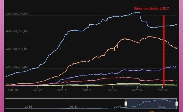 然而,就穩定幣市值而言,最大的變化是$USDC。