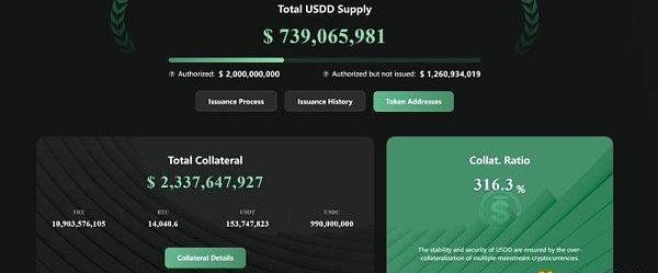 USDD僅由$TRX以1:1的比例鑄造,并且僅由白名單會員鑄造。但TronDAOReserve聲稱,USDD以293%的抵押比率得到其他加密資產的支持。
