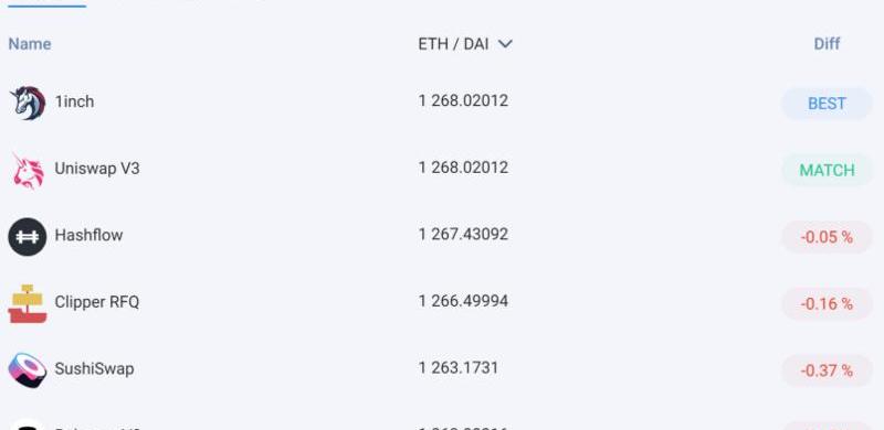 以1inch為例,通過上圖的界面,用戶可以選擇滑點最低的DEX進行交易。
