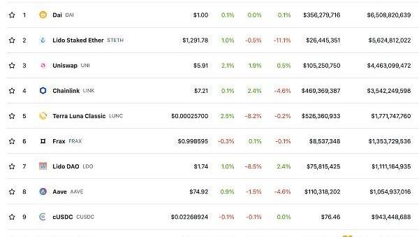DeFi項目鎖定資產前十排名及鎖倉量數據來源:defillama