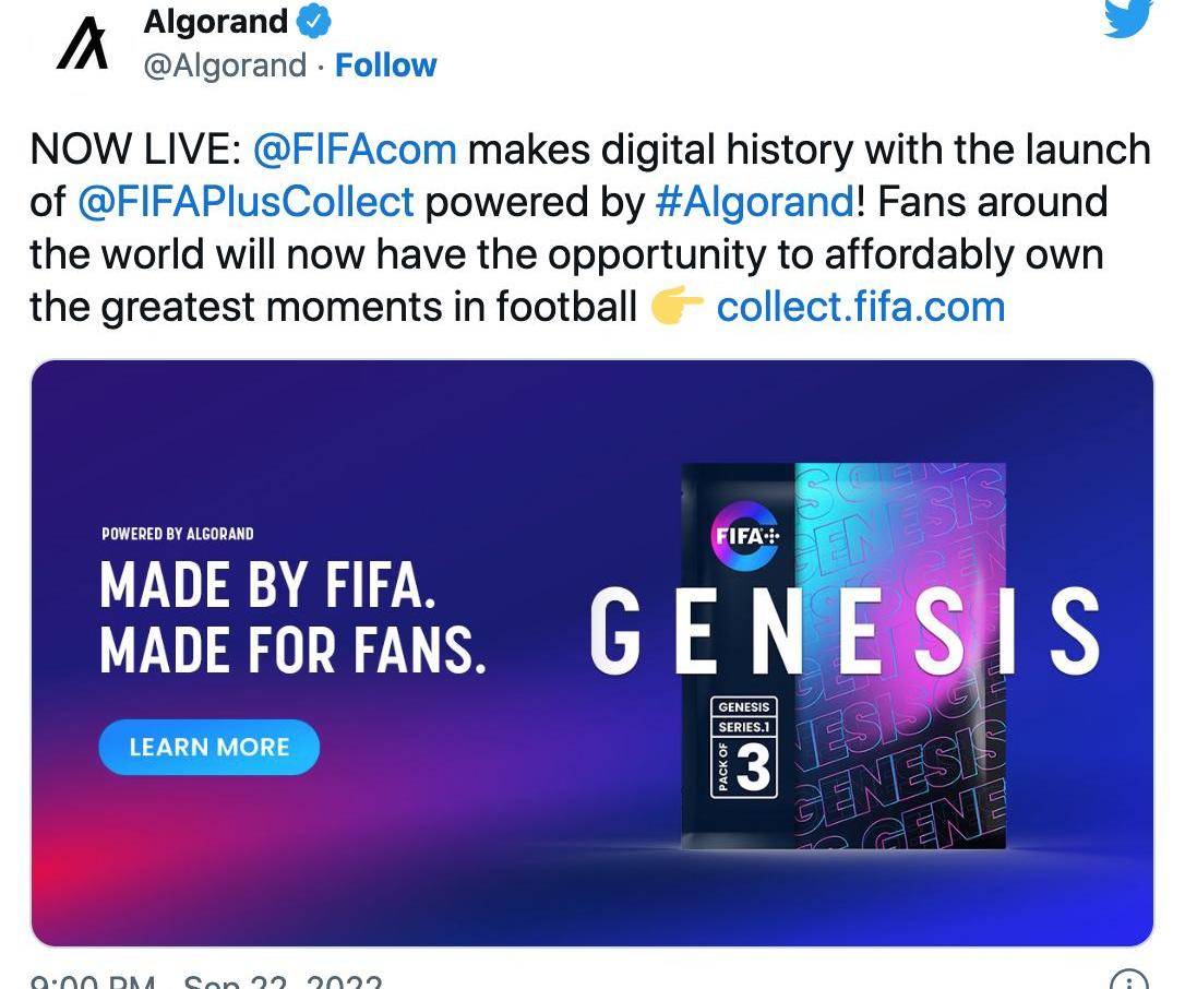 FIFA在數字領域創造了歷史,它推出了由Algorand提供支持的FIFAPlusCollect!世界各地的球迷現在將有機會以可承受的價格擁有足球的最偉大時刻!