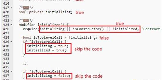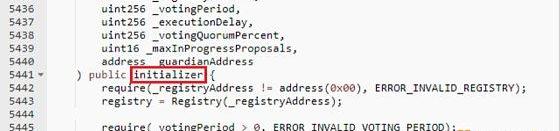問題分析:攻擊者之所以能夠攻擊成功,根本原因在于通過代理合約多次調用初始化函數,而初始化函數本應該只能調用一次的。以Governance合約中的初始化函數為例,其代碼如下: