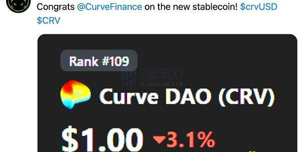 Twitter用戶諷刺CRV價格跌至「穩定幣水平」