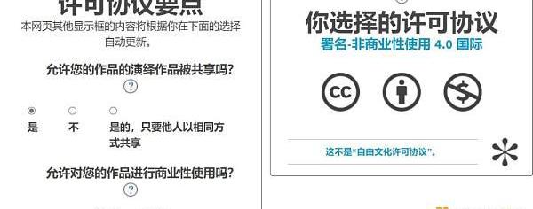 例如:我可以選擇保留自身署名權,授予他人作品改編權,但禁止他人對我的作品進行商業使用。此時我們只要靈活使用CC4.0國際協議,即可準確無誤的做到,具體如下圖所示。