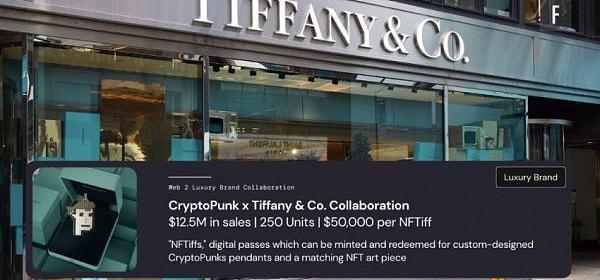 蒂芙尼以每個50,000美元的價格售罄了定制的Cryptopunk'NFTiff'吊墜。「NFTiffs」是一個可以用來鑄造和兌換定制設計的CryptoPunks吊墜和匹配的NFT藝術品的電子通行證。