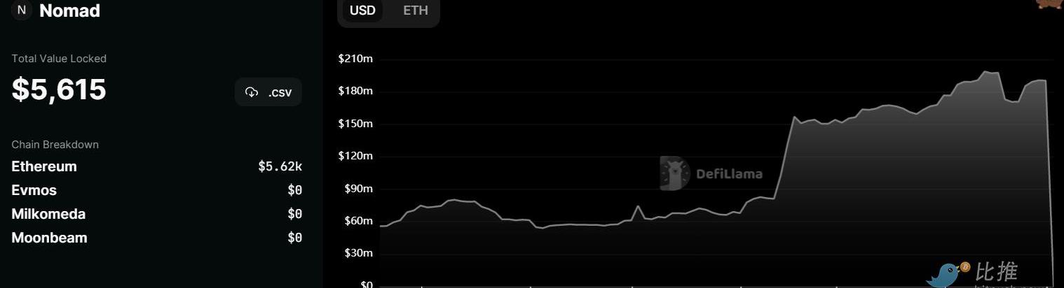 隨著Evmos和Moonbeam的總價值上升,Nomad在7月下旬達到了近2億美元的總價值。