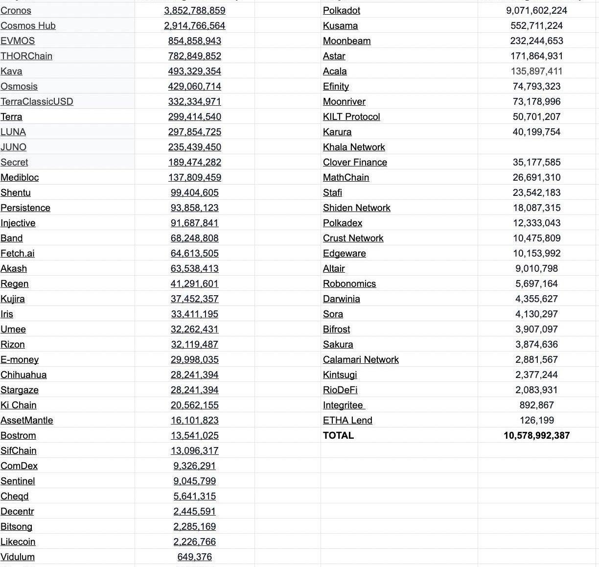 我沒有使用Coingecko的排名的原因是,他們列出了Cosmos和DOTSAMA生態系統中不相關的代幣。?