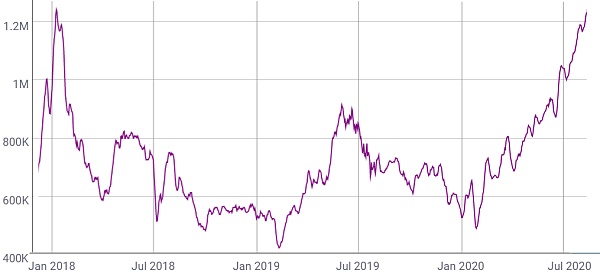 XRP/HKD-2.36%2020年,以太坊網絡交易數量增加了一倍多,現在幾乎與2018年1月的歷史最高記錄持平。
