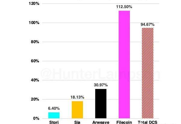 圖9.存儲的DCS數據市場的比例。資料來源:StorjStats、SiaStats、Viewblock、File.app、HunterLampson。