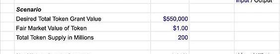 示例:你決定為員工提供價值45萬美元的token津貼。如果你的token價格在授予或計算時為1.25美元,那么你將提供給他們36萬token。