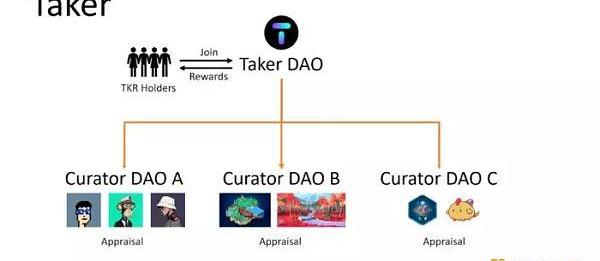 Taker是一個NFT資產的流動性協議,主要通過DAO的形式來為NFT借貸提供流動性,支持包括NFT,證券,合成資產等在內的多種形式的資產。持有TKRToken后可獲得DAO成員資格,參與決策借貸利率和公平定價等設計。同時,持有TKR也能通過質押獲得額外收益。