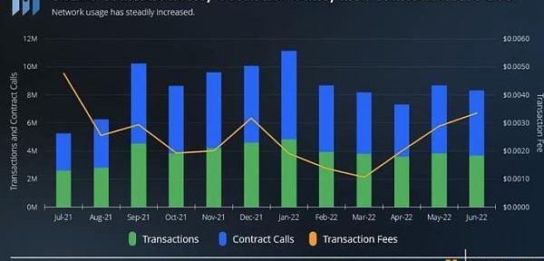 3、Tezos交易和智能合約調用次數增多,Q2季度只有小幅下降。