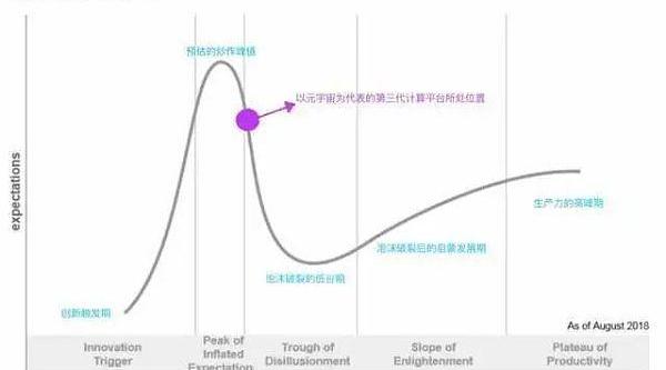 相應地,以元宇宙為代表的第三代計算平臺技術,在“炒作曲線”中的位置,據本編輯部估計應為: