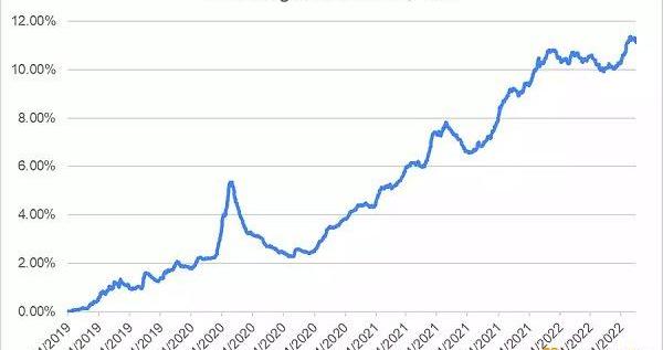 然而,盡管此次波及全行業的危機將所有大型Crypto公司都拖到了湮沒的邊緣,有一家公司卻依然堅守在戰場之上——那就是FTX,一家位于巴哈馬的超級公司,其市場價值已達到數十億美元。在信奉利他主義的SamBankman-Fried的帶領下,FTX在此次危機中的處境比其他Crypto公司都要好。FTX通過精準營銷、主動游說以及產品的持續推出,占據了相當一部分比例的Crypto市場份額,其在全球總交易量中的比例于今年年初超過了10%: