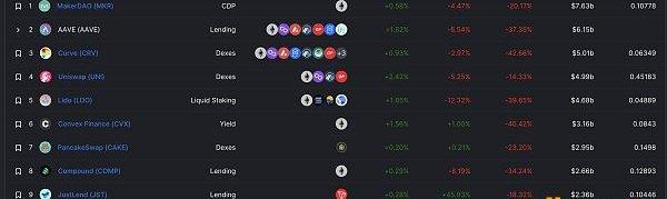 DeFi項目鎖定資產前十排名及鎖倉量數據來源:defillama