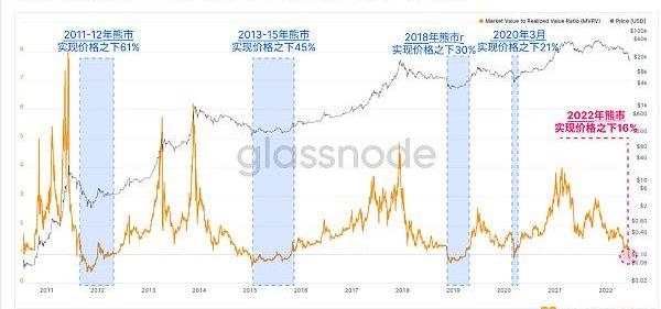 現貨價格低于實現價格交易并不常見,在過去六年中只出現過三次。最近的兩次事件是2020年3月的新冠疫情危機,以及2018年11月的投降事件,這兩次事件都為該熊市周期錘煉了底部。