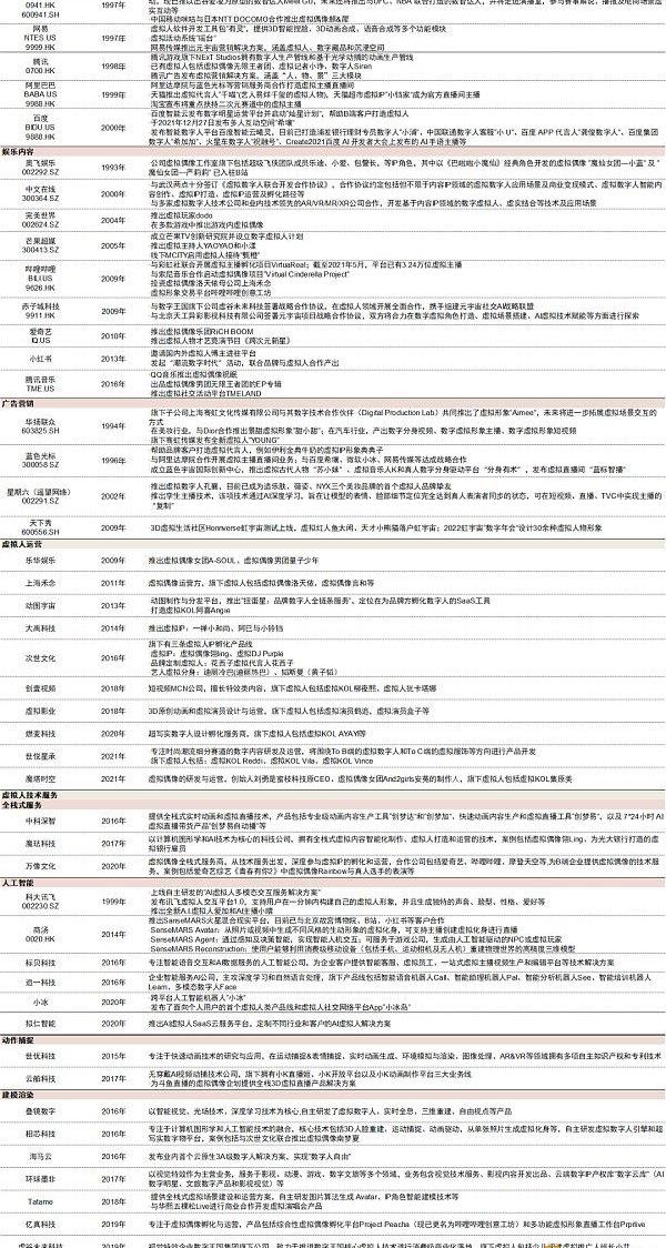 圖表:部分虛擬人產業鏈公司布局情況