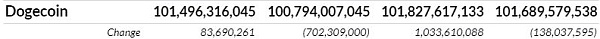 DOGE在第三季度自由流通量減少了1.38億枚。雖然第3季度中新挖出的DOGE有13億枚,但在本季度中,總共有14億枚 DOGE的地址被確定為持幣超過5年。根據CMBI調整后的自由流通量方法學的定義,此供應被認為屬于長期持有或已經丟失。