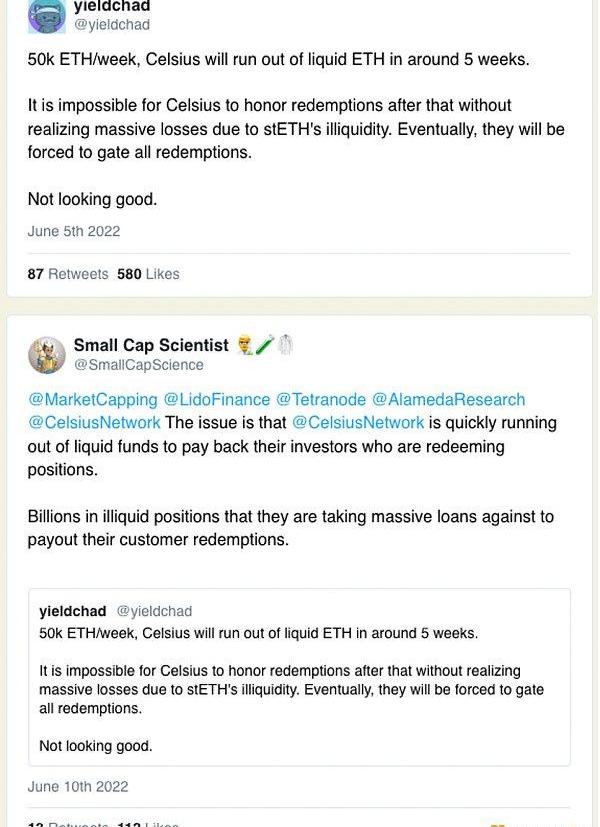 相反,我會嘗試了解在最壞的情況下誰是受害者:想象一下,Celsius?fud是準確的,而鏈上杠桿質押者無法發布抵押品,等等。