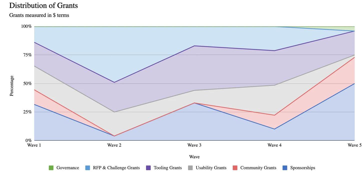 在Uniswap協議發展到可以被大量用戶采用的規模之前,資助外部項目沒有多大意義。直到上兩波Grant之前,政府都沒有將資金用于治理。相反,大多數Grant被劃分給可用性、工具和RFP。