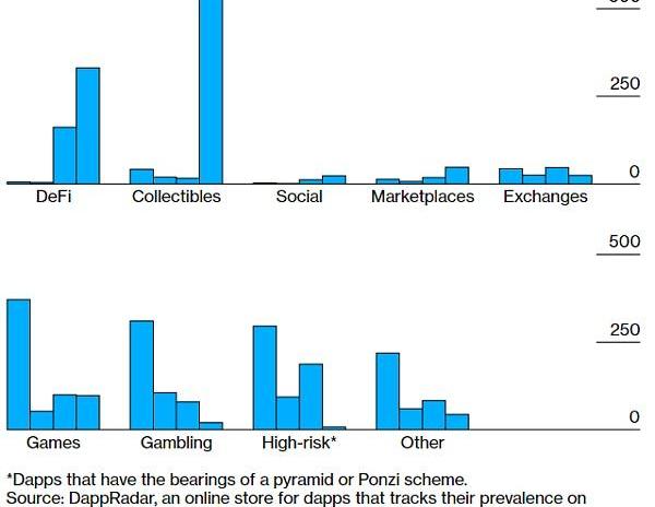 2018年至2021年,每年在以太坊區塊鏈上推出的去中心化應用程序的數量