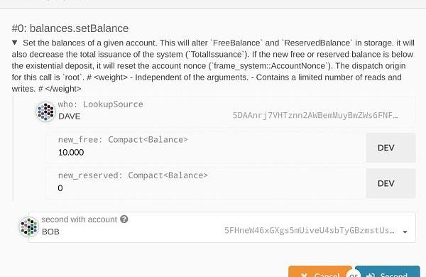 例如,如果你想提議賬戶“Dave”的余額為10個通證,那么你的提議可能類似于下圖所示。