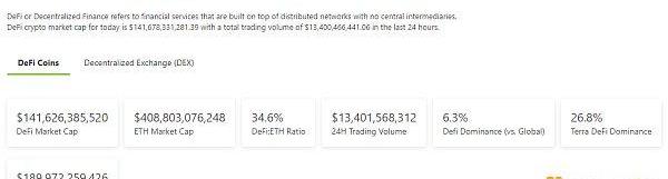 1.DeFi代幣總市值:1416.26億美元