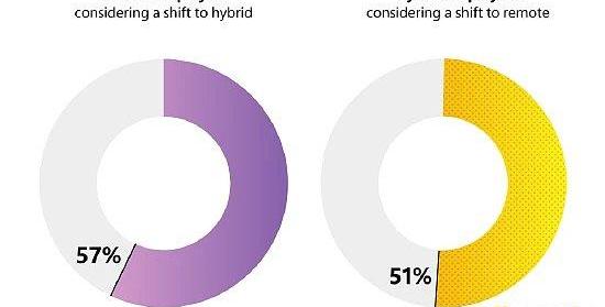 根據調查,混合辦公越發成為全球勞動市場的新常態,勞動力已經適應與疫情共存的工作模式。其中,57%受訪人傾向于遠程辦公,51%受訪人認為考慮在未來1年轉向混合辦公。與此同時,43%的員工在一定程度上或極有可能考慮在未來一年換工作,比去年同期的41%略有上升。
