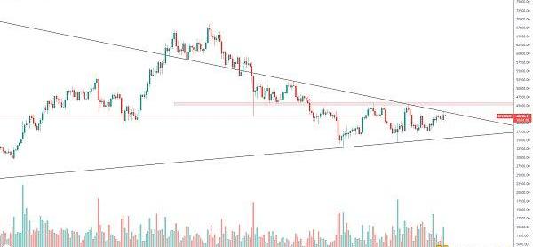 近期繼續關注日線能否有效突破站穩上方壓制線,今日點位43250美金,突破站穩后面將有機會再次試探前期多次遇阻的壓力帶,這一帶若能突破,上方月線壓力47500-48500美金。