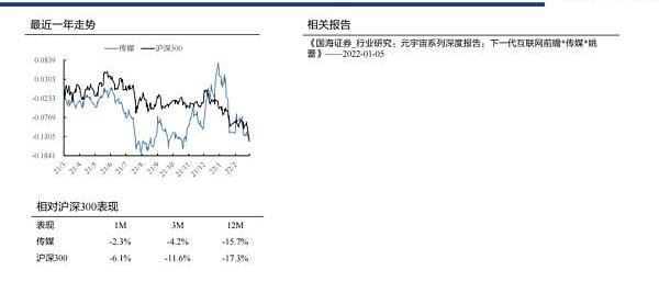 投資建議:虛擬人產業鏈主要包含基礎層、平臺層以及應用層,隨著底層技術硬件等突破,將賦能更多應用場景,基于此,給予行業“推薦”評級。頭部綜合大廠在技術沉淀、IP運營、流量有較好基礎,偏好探索底層技術、硬件架構以及針對公司業務應用做工具化產品,產業鏈布局相對全面,如海外Meta、Google等;國內騰訊、阿里、B站、網易、百度、字節等。A股傳媒公司主要涉及平臺層垂直解決方案提供以及應用層,建議重點關注:藍色光標、捷成股份(參股公司世優科技提供廣電媒體、虛擬主播直播及虛擬場景、影視動畫虛擬內容制作等多個場景的成熟技術產品和解決方案,計劃推出MetaAvatarShow元宇宙分身、浙文互聯、華揚聯眾、星期六、天下秀等。其他建議關注:應用營銷領域利歐股份、天舟文化、天地在線等;硬件動捕方向利亞德;AI方向科大訊飛、商湯科技等。