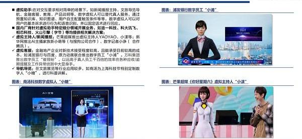 虛擬助手:對交互要求相對簡單的場景下應用替代真人服務,如新聞播報主持、文旅導覽導航、金融客服、教育、產品說明等。這類產品對于形象精度、交互要求、人設打造均不高,改成這類產品對于形象精度、交互、人設打造要求均不高。