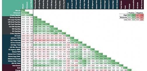 從歷史上看,加密資產與其他主要資產類別的相關性較低,提供了投資組合多樣化的好處,因此對投資者具有吸引力。比特幣、以太坊和加密一籃子之間的加密資產類別也有一個不太明顯但仍然值得注意的多元化收益,其相關性為0.6和0.7。