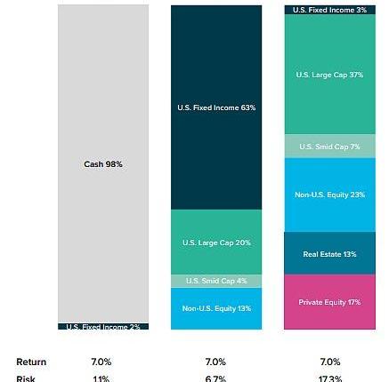 估值的增加進一步加劇了傳統資產的預期回報在過去30年中不斷下降的環境。因此,投資者被要求將其投資組合中越來越多的部分分配給流動性較低的私人市場替代資產,同時承擔更大的波動性,以保持7%的預期回報率。