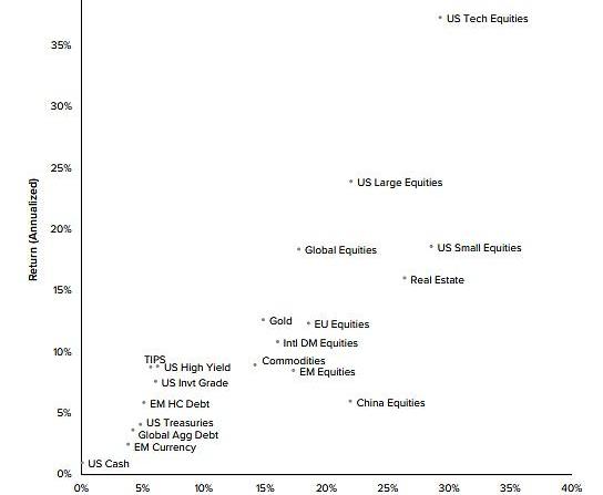 現代投資組合理論是建立在這樣一個原則之上的:一個適當多樣化的風險資產組合可以為給定程度的風險提供比這些資產本身能夠提供的更高的回報。