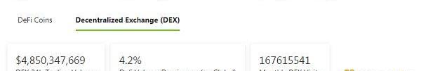 2.過去24小時去中心化交易所的交易量:48.50億美元
